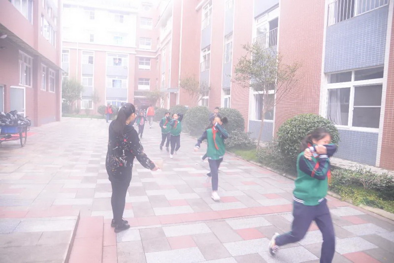 At 13:10, the fire alarm sounded, and all the teachers on duty immediately organized the students to calm their emotions and evacuated to the playground quickly according to the established route.