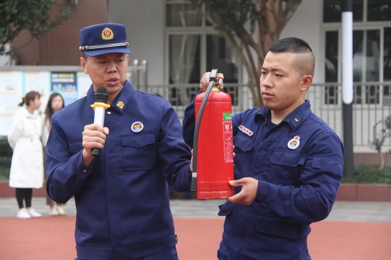 The officers and soldiers of the fire brigade conducted simulated fire-fighting drills, introduced common fire-fighting and disaster relief appliances to the students, and introduced the structure and use of fire extinguishers in detail.