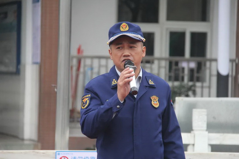 Director Ye commented and summarized the fire emergency simulation drill. Luo huanlin of Dujiangyan fire brigade was hired as the vice president of our school.