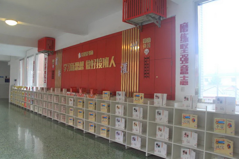 为进一步弘扬红色传统,激发学生学习热情,积极响应习近平总书记“爱读书、读好书、善读书”号召,助力“学习新思想,做好接班人”主题教育活动,加强我校学生学习党史和习近平新时代中国特色社会主义思想的学习和贯彻,我校在教学楼二楼平台开辟了近100平米的主题图书角,摆放了红色书籍共1000余册。
