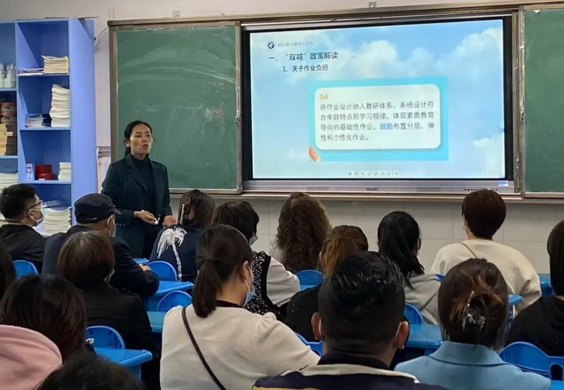 principal Ma gave a detailed interpretation of the "five management" and "double reduction" policies. He introduced the specific implementation of the school's "five management" and "double reduction" policies. He emphasized that after the “double reduction” of students, the school should do the “double plus” of classroom teaching and after-school management, and the “double plus” of parents’ guidance and companionship, so that families and schools can work together to adhere to the essence of education and calmly respond to changes in education policies.
