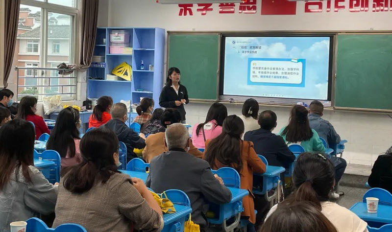 The theme of this parent meeting is "learning "double reduction" home-school co-education" to help parents deeply understand national policies, to master scientific family education methods, and to achieve the goal of family-school co-education.