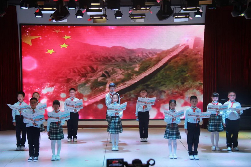 跨越五千年历史的长河,中国以古老而全新的姿态傲立寰宇;走过一百年赤红的道路,共产党带领着中国人建设新时代的美好生活。共产主义的接班人们,佩戴着先烈的鲜血染红的领巾,在党的领导下,向着未来,前进,前进,前进进!