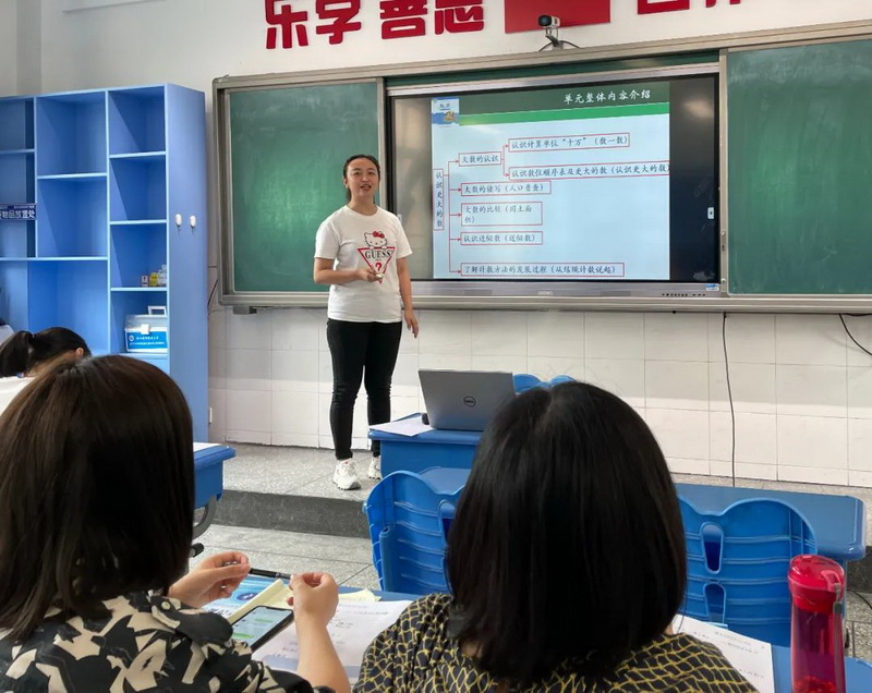 The young teachers of the school'smathematics group presented three wonderful mathematics classes. The classroomis carried out in two aspects: first, carefully design the teaching links basedon the learning situation; Second, based on unit literacy, step-by-stepin-depth to achieve learning objectives