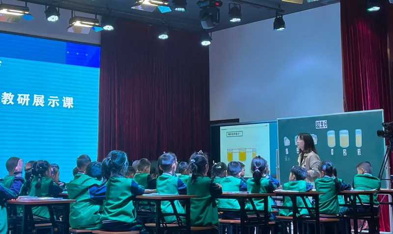 The first demonstration class was"birthday" brought by Yue Qifeng. She is closely related to the lifesituation, stimulates students' learning enthusiasm, and enables students tolearn the method of comparing size and quantity from their familiar lifesituation.