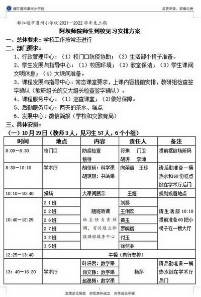 2021年10月中旬,阿坝师范学院师生共200余人次人来我校见习,我校全体教职员工充分发挥主人翁精神,热情接待来客。