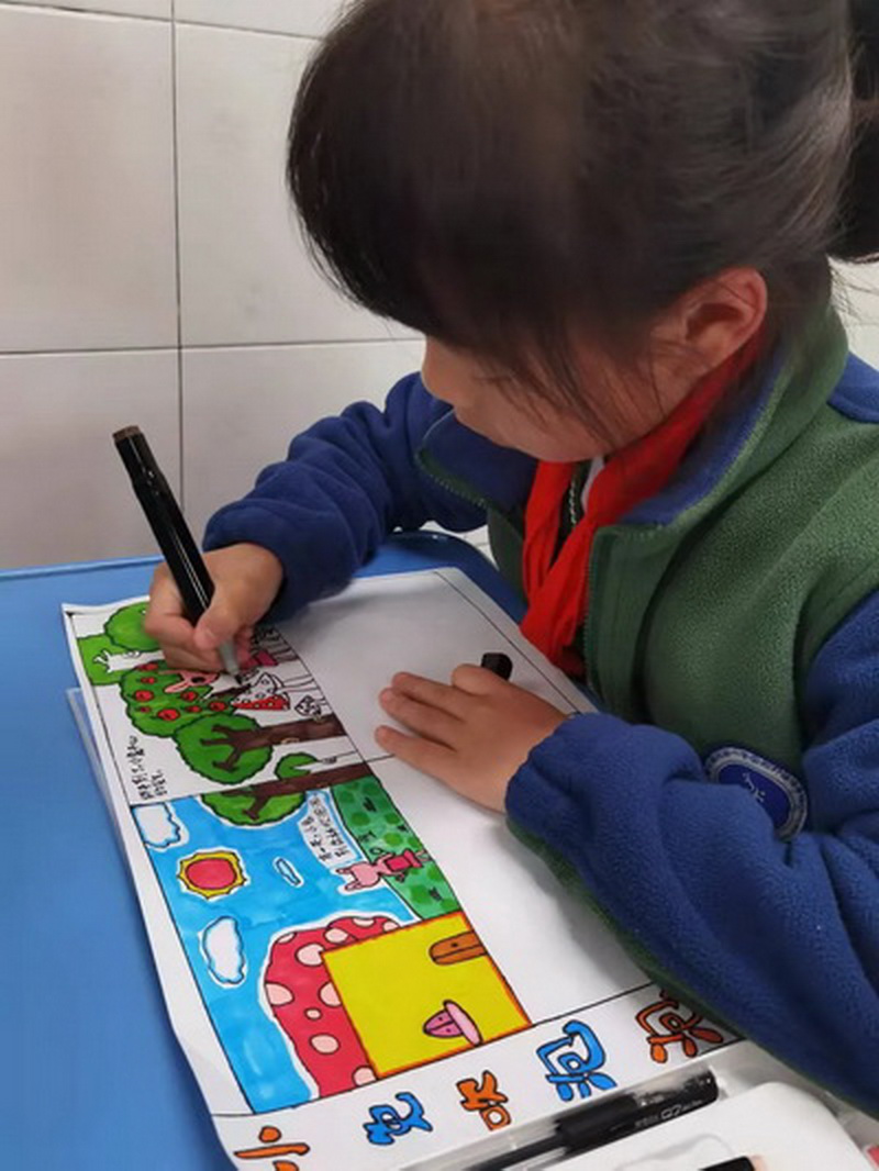 First of all, Mr. Wang Li carried out the teaching of comic strip in the class. During the teaching, she explained the characteristics, components and layout design of comic strip, and made corresponding demonstrations on blackboard and video, which gave students a lot of creative inspiration. Through learning, students have mastered the basic methods of comic books and learned how to make up stories. Students have strong interest in the whole learning process, actively participate, give play to their imagination, and complete their creation carefully.