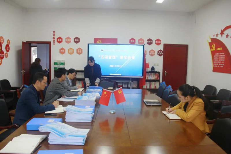 On October 21, 2021, Xiao Mingqing, the responsible supervisor of the Education Bureau, carried out the "five management" supervision inspection. Field investigation on the study, research and implementation of the "five management" policy of our university.