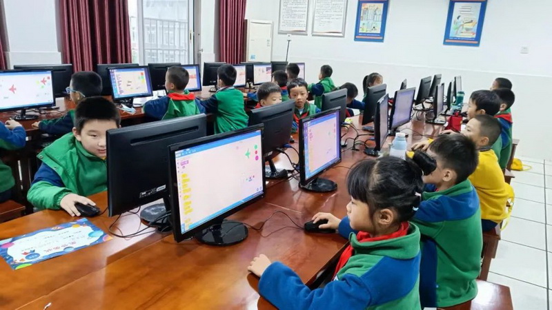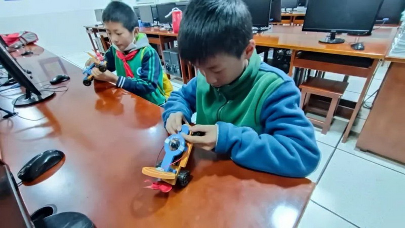 Community courses such asUAV, robot, electronic tabloid, scratch programming, electronic Baipin, smallexperimenter, counting chess and chess fully train students' thinking andinspire students' wisdom.