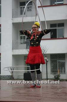 加拿大艺术指导Jerry Snell负责的“国际马戏行动”目前正在和加拿大国际灾难减痛组织“小丑无疆界”合作在亚洲地区进行系列灾害减痛活动。2009年3月9日下午,加拿大马演员和专业教师让我校的孩子们欣赏到了有趣的马戏和魔术表演,在一定程度上帮助了他们重拾生活的信心。孩子们也从中得到了欢乐和笑声。