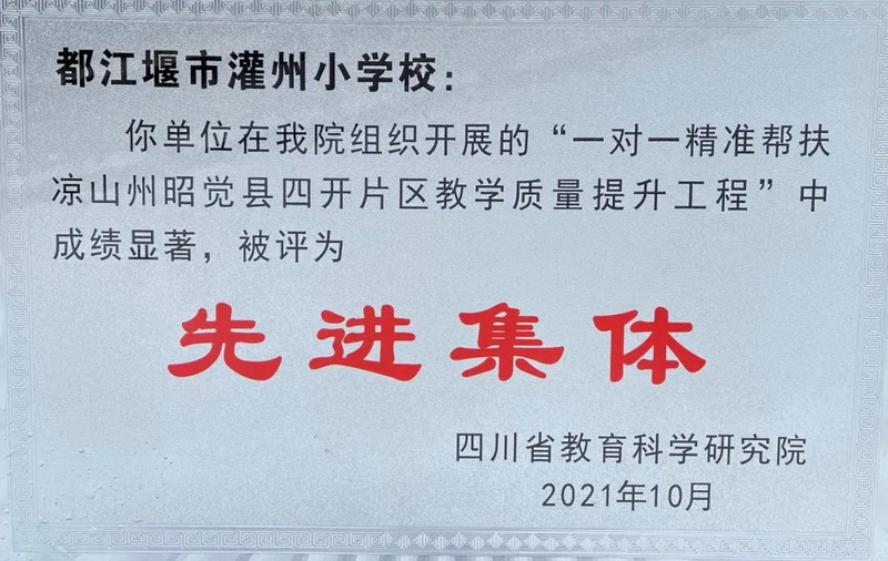 2020年6月,我省启动凉山州片区学校“一对一”精准帮扶提升工程,在省教科院的引领下,在昭觉县教育局的大力支持下,我校组织了党员志愿者、都江堰市马长俊名师工作室成员和骨干教师组成班级学科“一对一”的帮扶团队。学校帮扶团队在《教育科学论坛》杂志社的统领下与成都市成华实验小学一起承担了昭觉县大坝乡中心校教育帮扶工作。