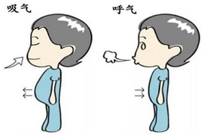 ①吸气:深深地,慢慢地,大吸一口气,直到吸不进去,屏住;②呼气:慢慢地,轻轻地呼出来,呼出来,呼出来;③然后,重复上面的步骤3~5次,吸气,呼气。