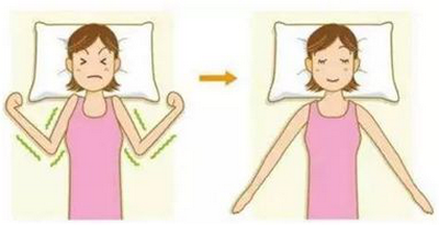 ①选择仰面躺在床上或者舒服地坐在沙发上;②握紧你的双拳,握紧,再握紧;慢慢放松,再放松,完全放松;③抱紧你的双臂,抱紧,再抱紧;慢慢放松,再放松,完全放松;④双腿伸直,绷紧你的脚弓,绷紧,再绷紧;慢慢放松,再放松,完全放松。