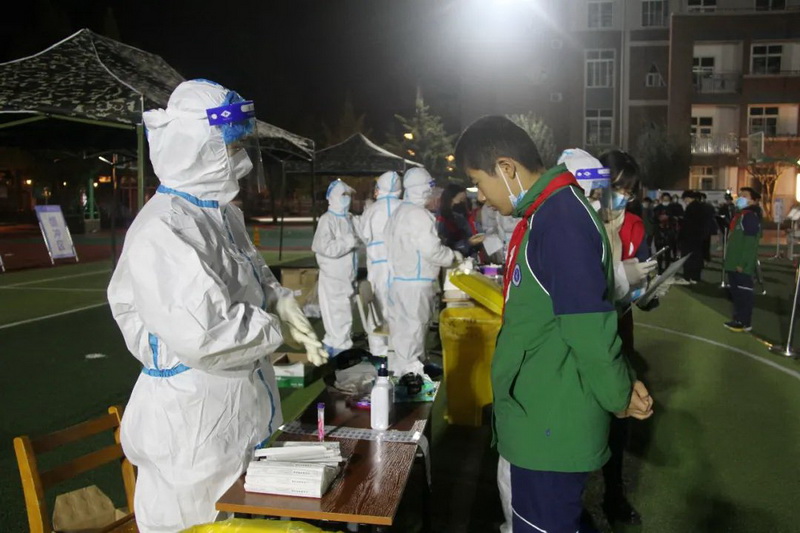 疫情防控升级,也还是他们,在初冬的凛冽中来到我们身边,为师生们进行第二次检测,一个个细致的动作,一个个忙碌的身影,在极短的时间内,医护人员完成了全校师生2000多人的检测。他们的努力,换来了我们能够安睡的夜晚,当我们在甜蜜的梦乡,他们却又奋战在另一处抗疫的战场......
