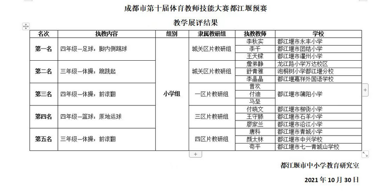 In order to improve the physical education teaching mode, implement the teaching tasks of learning, practicing and competition and realize students' in-depth learning, Dujiangyan physical education teacher skills competition and classroom teaching exhibition and evaluation activities were held in Paotongshu Primary School Dujiangyan Branch Campus on October 21.