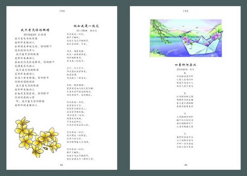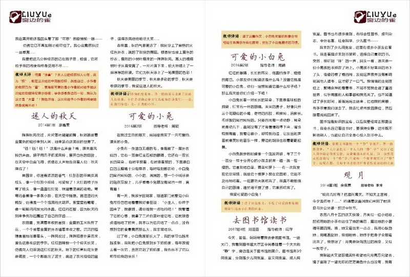 The column "bird by the window" has been revised and retained for many times in the school journal of June. It represents the freedom of spiritual creation and the presentation of non-uniform words.