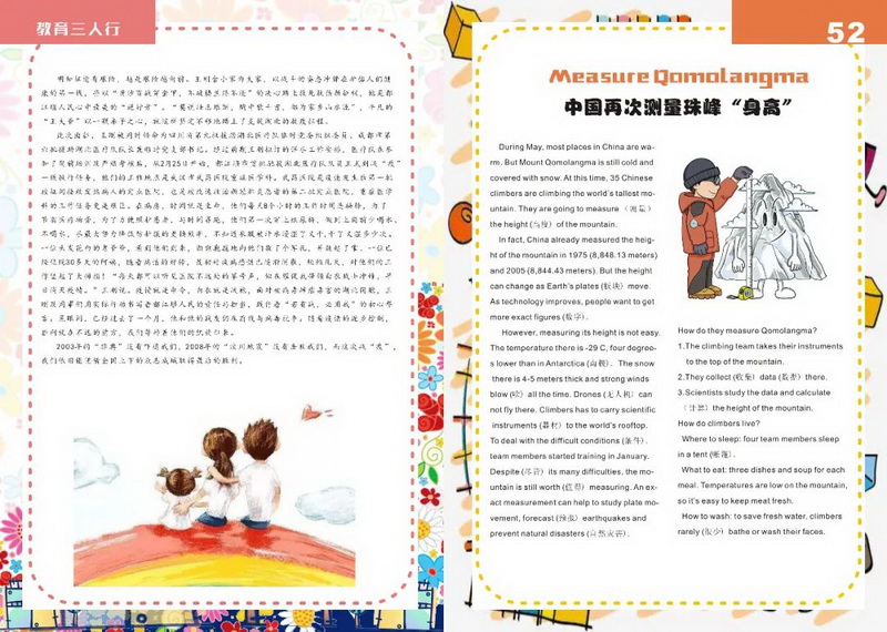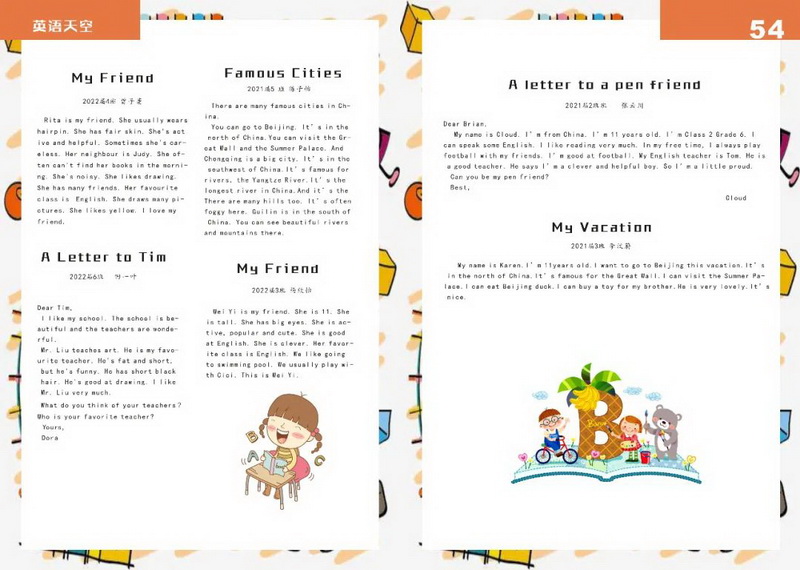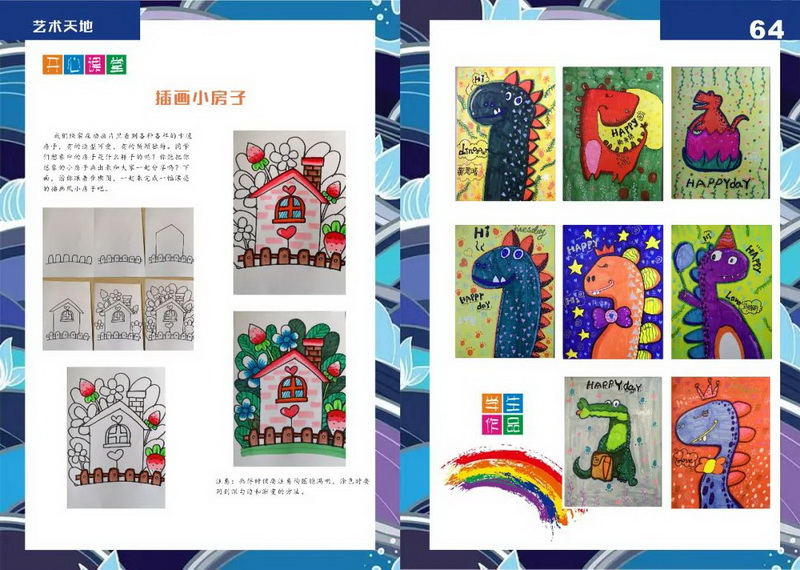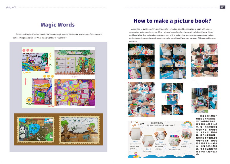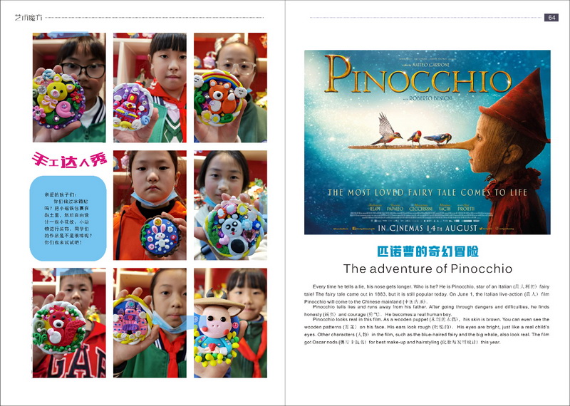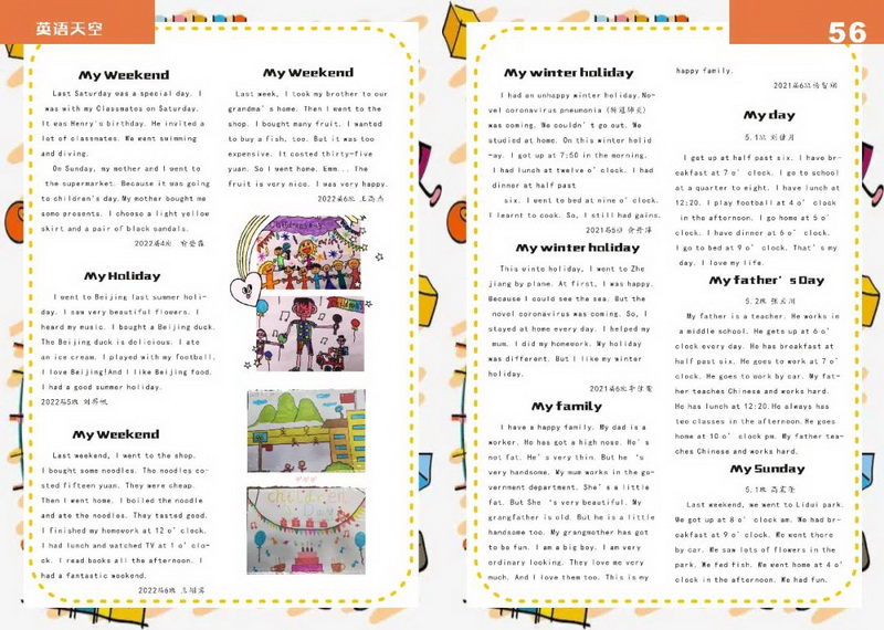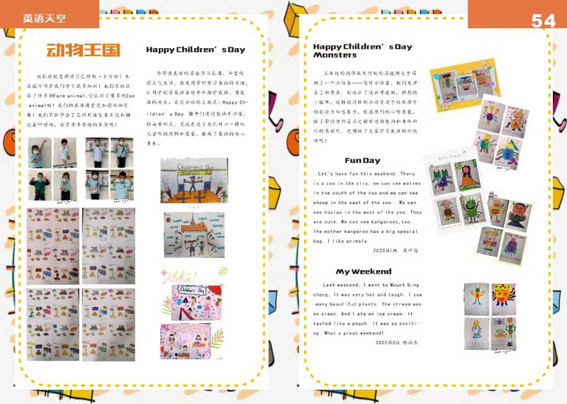 这一栏目展示着我校各学科探究实践作业。其中的“英语天空”版块有鼓励学生自主阅读英文绘本,DIY英文手抄报展评,英文版家庭树,课外查阅与课本相关的中外文化背景知识等;“动感地带”里有北京冬奥会宣传阅读,滑雪技巧;“艺术魔方”里的校园小画家作品;“科学世界”里的实验小论文、调查报告,设计方案、科学家的故事等,充分体现了《六月》校刊在作业展示方面的育人功能。