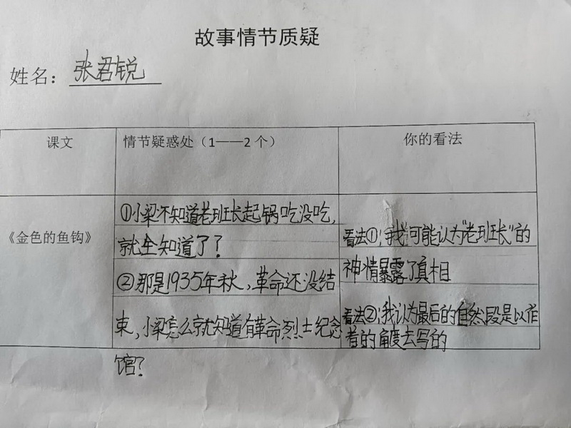 比如伍建强老师在重庆江津举行的国家基础课程改革实验区课例展示上同学们敢于质疑课文情节的真实性,鱼骨头真的能嚼碎吗?有那么巧吗,到最后就剩老支书时桥就塌了。讨论争辩中对“小说情节是虚构的,却又有生活的影子”这句话心领神会,这样的高阶思维培养是当下教学是否具有发展性的重要标志。
