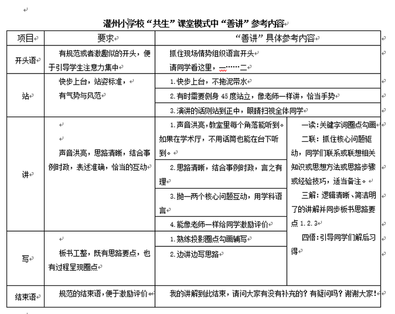 “接下来,由我代表我们小组发言……”“我的讲解到此结束,请问组员有补充吗?请问大家还有什么疑问……谢谢大家”