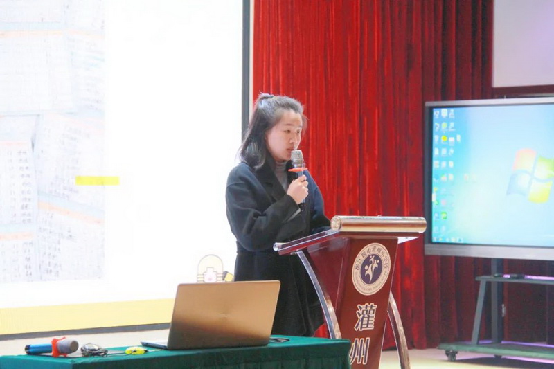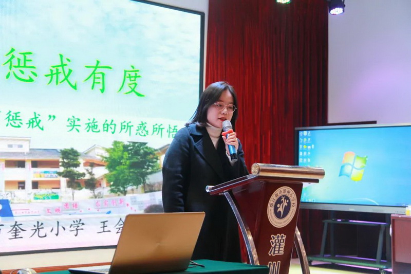 Wang Huiping, teacher of Kuigung primary school, conducted the theme exchange of "love in heart and punishment in degree" to share the work experience of head teachers.