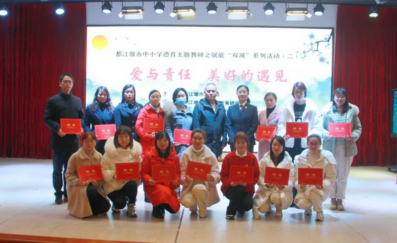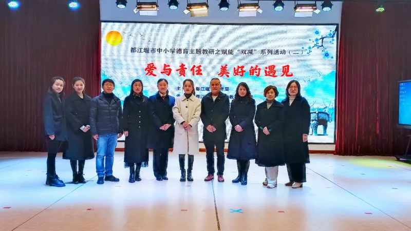 In order to implement the "disciplinary rules for primary and secondary education" and the spirit of "double reduction", reduce the burden and improve the quality, establish morality and cultivate people, and promote the comprehensive, harmonious, healthy and happy growth of students, the theme teaching and research activity of "love and responsibility, beautiful meeting" co organized by our school was successfully held on December 7th, 2021.Teacher representatives, leaders in charge and head teacher representatives from schools in Dujiangyan City participated in the teaching and research activities. Also present at the meeting were leaders and representatives of various departments of Dujiangyan City. Teachers who can't attend the meeting attend the meeting in the cloud.