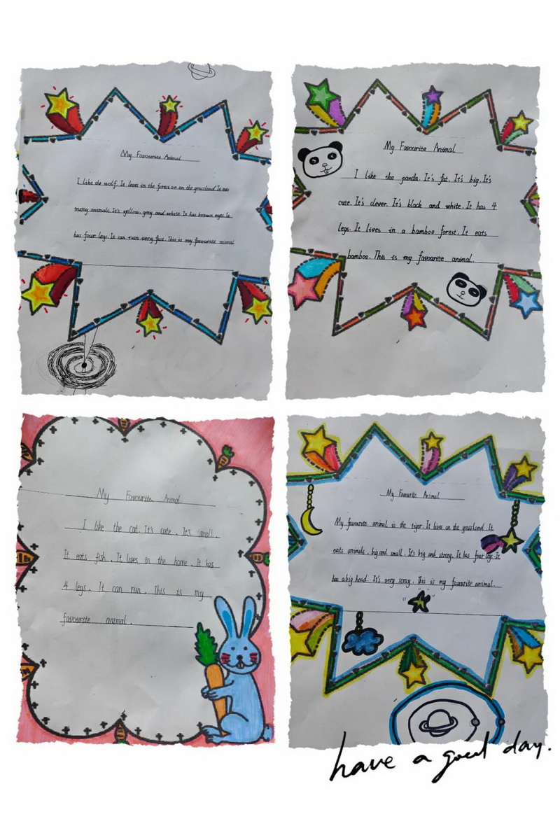 让孩子们走进动物世界,去了解人类与动物之间的感情,探究动物的特征和生活习性,抓住动物的特点,再用所学知识来描述自己喜欢的小动物。快来看看我们笔下的小动物吧!