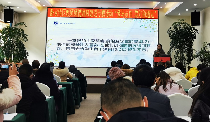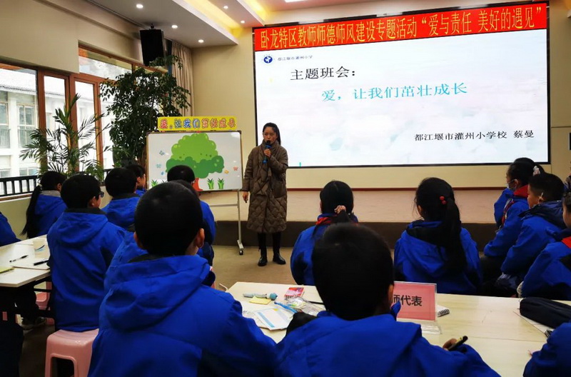 为了促进区域间教育交流, 提升班会教育在“双减”背景下的实效性,提升教育质量,2021年12月17日至18日,在都江堰市中小学教育研究室德育室马德庆主任的带领下,我校蔡曼老师到达卧龙特区耿达一贯制学校,参加由卧龙特区社会事业发展局主办的“师德师风建设专题讲座活动——爱与责任美好的遇见”献课活动。