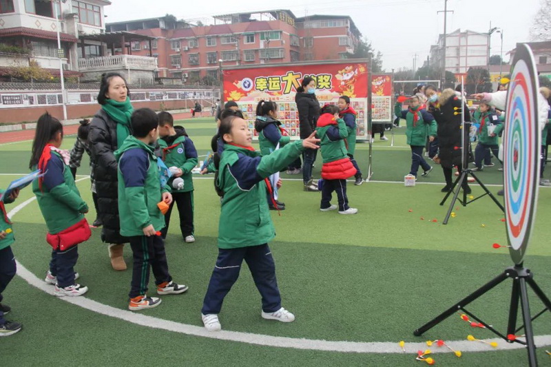 孩子们投掷磁性飞镖,中了几环,就去哪个项目一展风采!