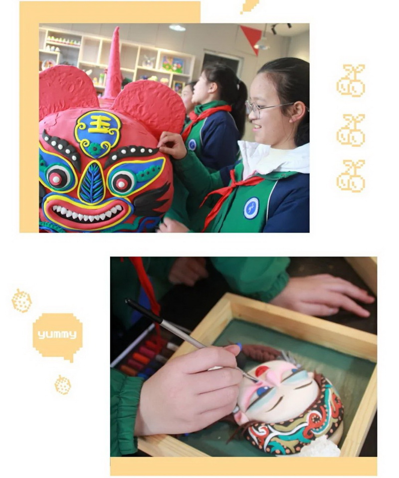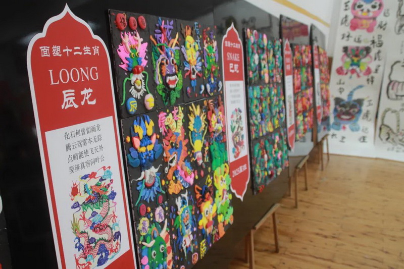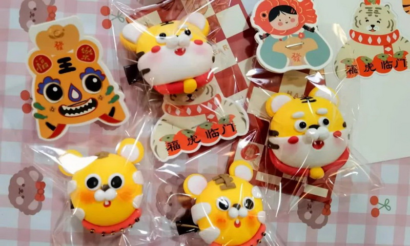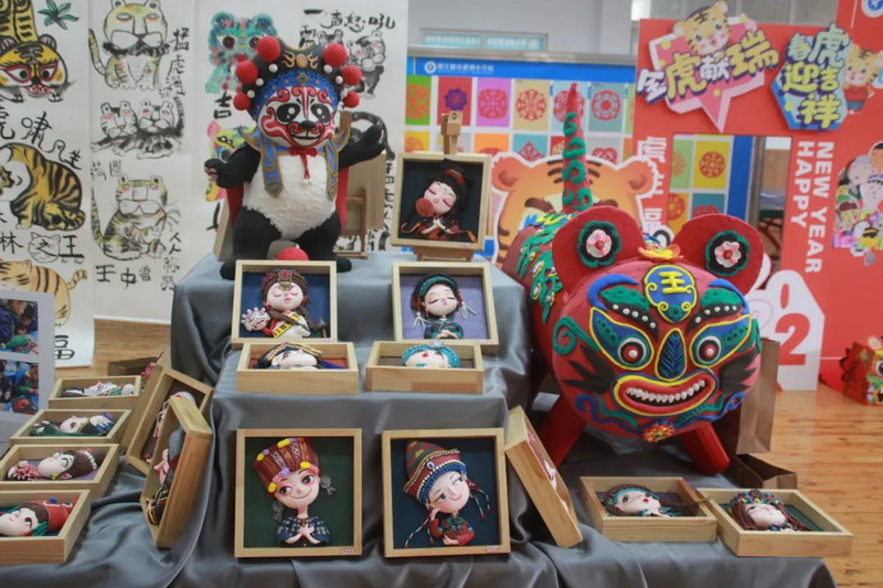 The students of the dough sculpture club made national dolls, big tigers and new year brooches.