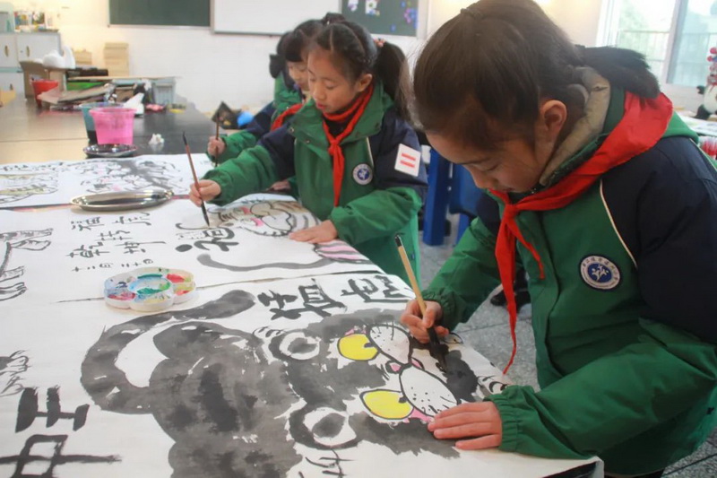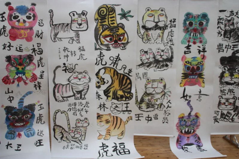 The children also drew traditional Chinese paintings with the theme of tiger.