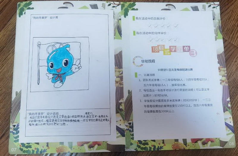 孩子们自己动手,在教师的指导下,绘制“我的冬奥梦”设计图,并写下设计说明。