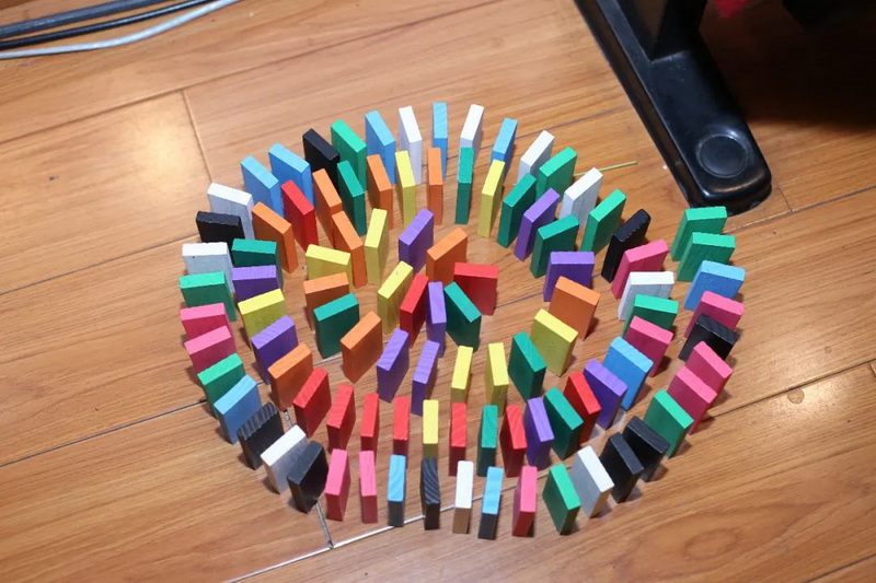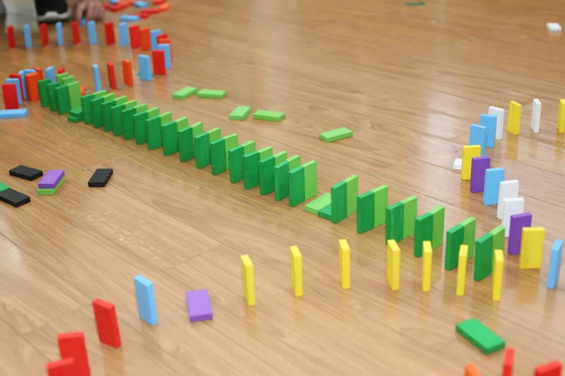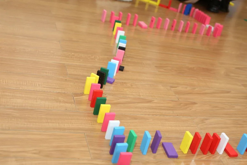 孩子们搭建多米诺骨牌,看看他们优秀的动手能力!