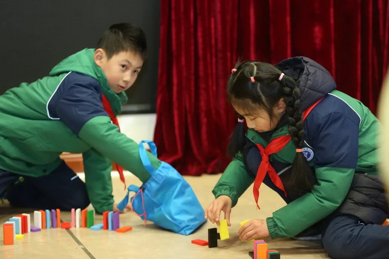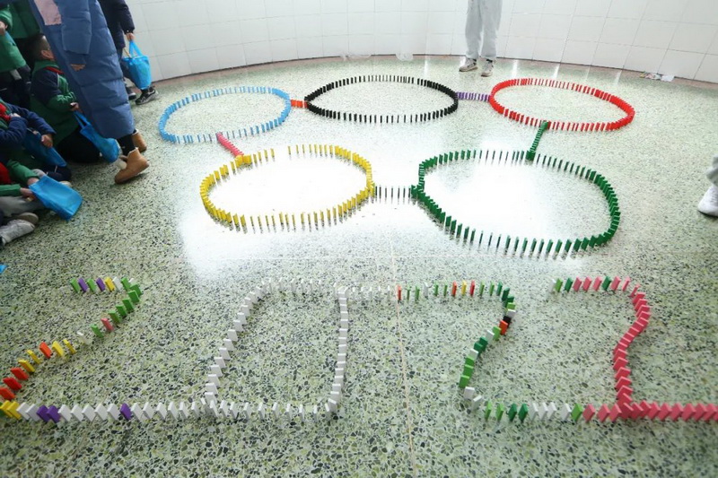 The Olympic dream has always been in our hearts. Therefore, our school has carried out research and learning activities with the theme of "dominoes" to open the Winter Olympic dream in the hearts of children.