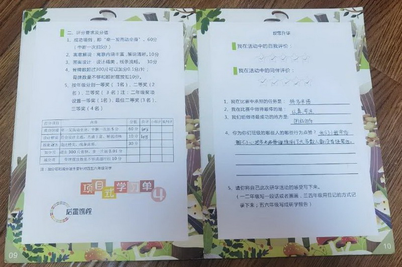 他们详细地记录自己在互动中承担的任务、做的优秀的地方、小组亮点、发现别人的闪光点。最后,用多种多样的形式,写下自己的活动感受。