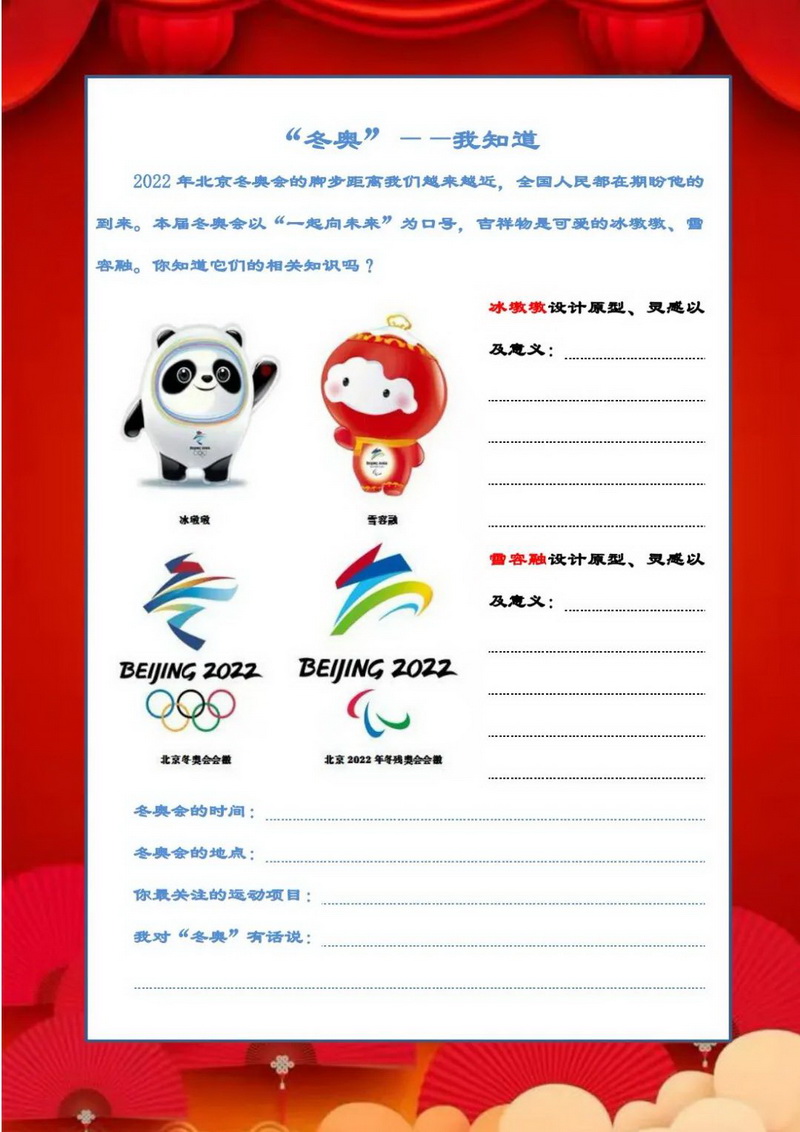 Dear children, the holiday is coming! When the "Winter Olympics" and winter vacation meet, the symbiotic classroom of Guanzhou primary school also extends to the vast world. We have designed the course of "Collecting Five Tigers" practical exploration activities for you. I hope you and your family can taste the growth joy of five education and symbiosis in this full year!