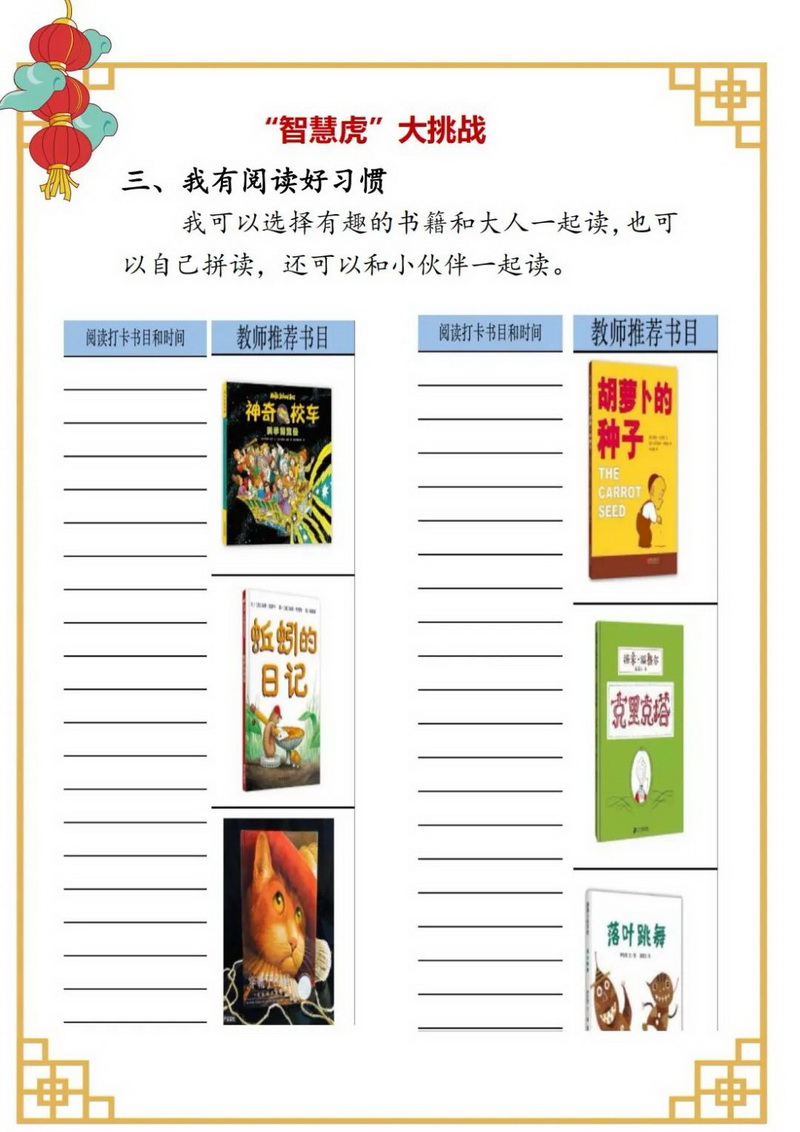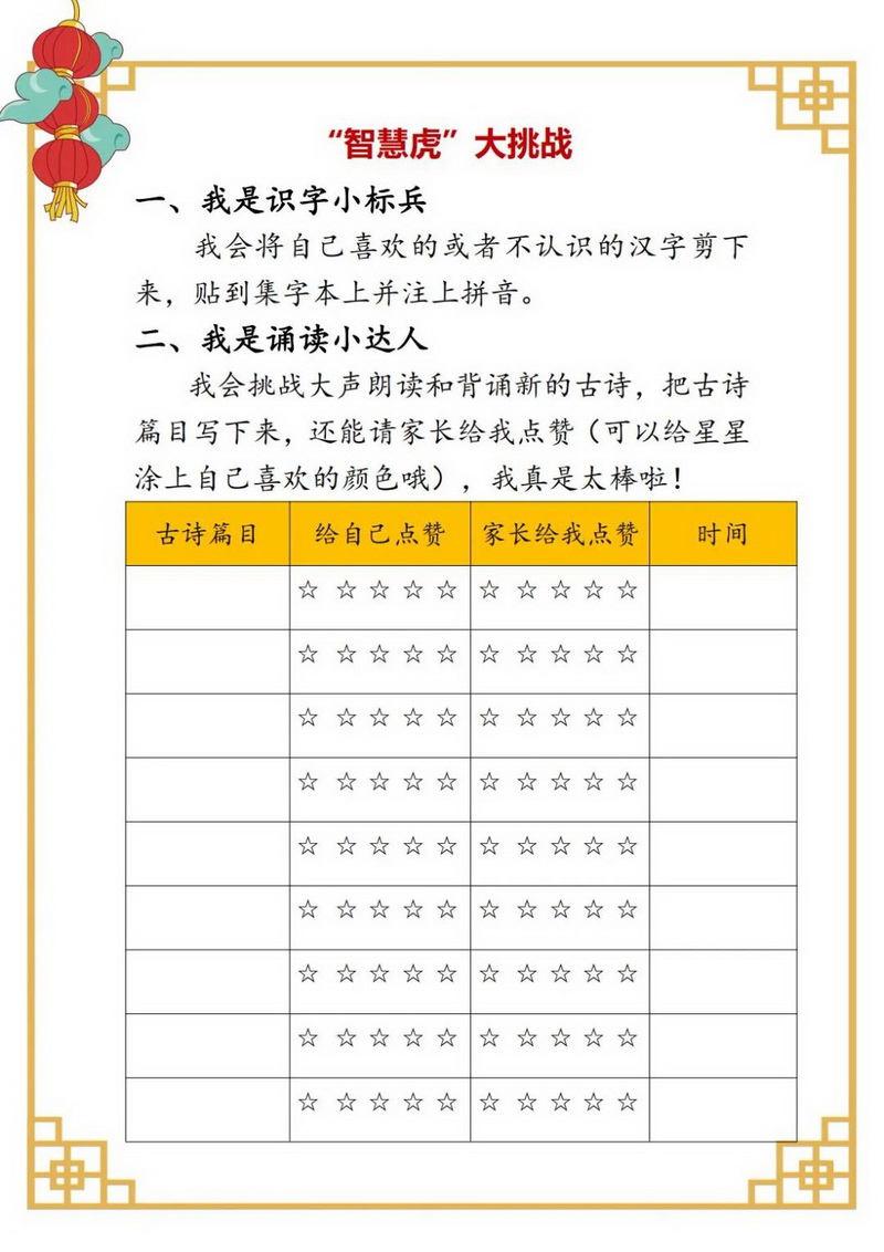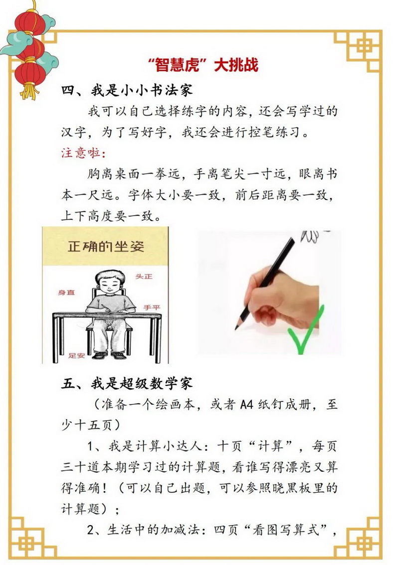 当数学与漫画相遇会是怎样的情景呢?孩子,你可以把自己做错的题,印象深的题,或者自己觉得特别有趣的解题故事画成四格漫画。伴随我们“新桃换旧符”,请用你学过的数学图形知识,创作春节主题的其他作品。当然,这个假期也是智慧虎“强基”好机会,阅读达人,书法秀,计算小能手,玩转字母ABC……这些你可要心中有数哟!