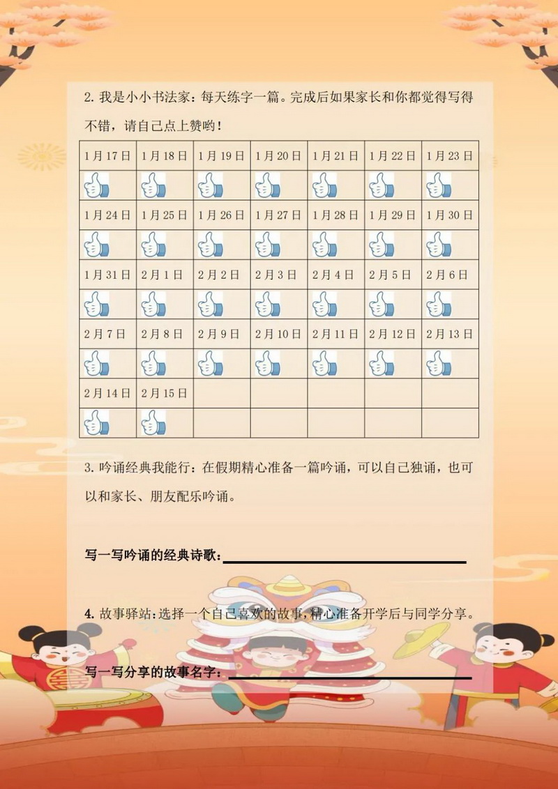 孩子们,家长朋友们,假期既是学习的中继站,也是体验日常家庭生活的契机。相对自由的假期,除了完成假期作业以外,走亲访友去拜年,与家人短途旅行,感受自然风光和人文瑰丽,健体强身这些活动都可以转化为大家感兴趣的综合实践活动项目,所以选择上面一个感兴趣的项目,快快行动吧!