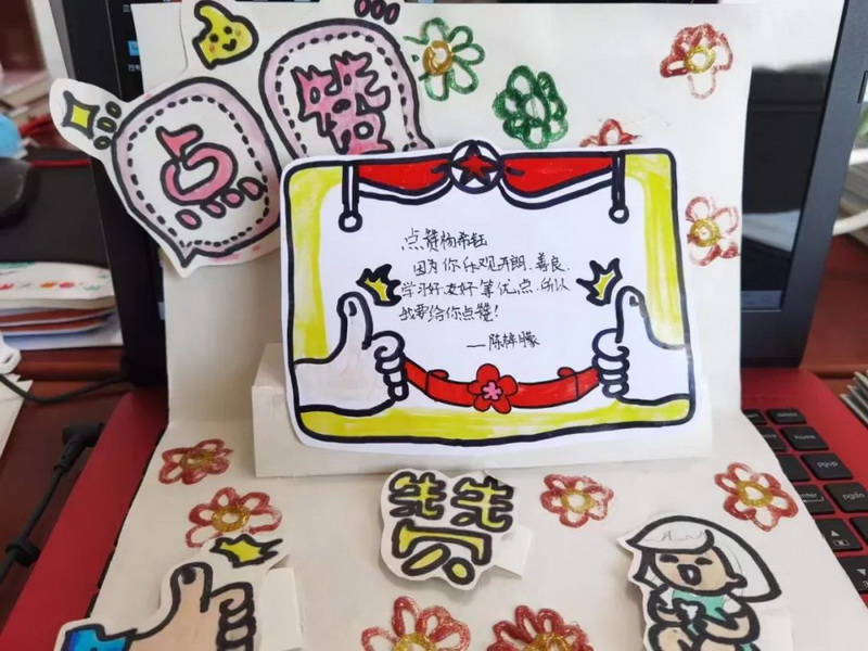 The school used the weekend to carry out the first psychological activity -- I want to give you a thumbs up, lead everyone to find and praise the people around them, they may be parents, grandparents, teachers and classmates, angels in white, sanitation workers, security guards uncle and so on, advocate students to "learn to praise, learn to be grateful".