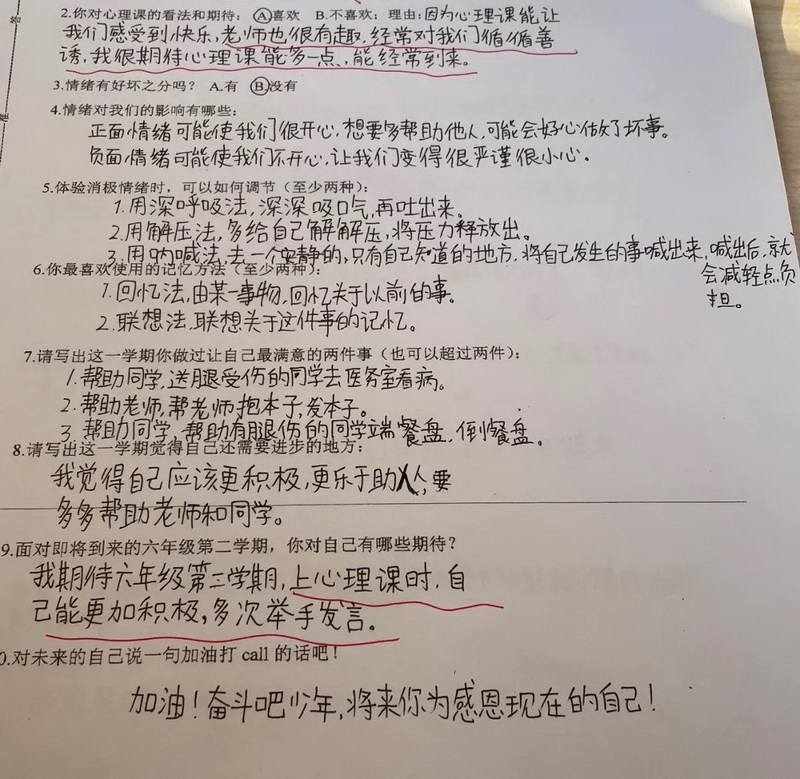 为了提升学生的心理素养,学校开设了更丰富的心理课程。每一节课的活动和畅所欲言让同学们在玩中学,乐中悟。