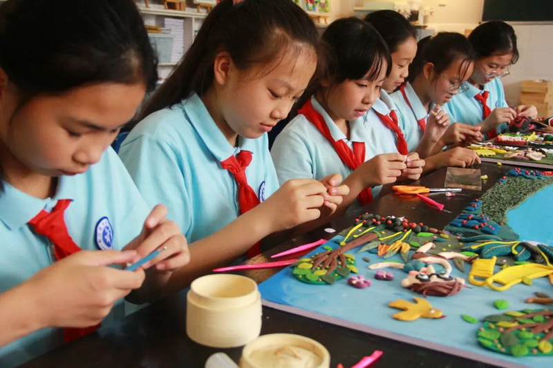 Actively implementthe "double reduction" policy, adhere to the fundamental tasks of"cultivating people with virtue" and "five educations at thesame time", and serve the all-round development of morality, intelligence,physique, beauty and labor of all students in the school. With the goal of"allowing children to grow up healthy and happy, laying the foundation forstudents' lifelong happiness", the school has set up music clubs: Chineseclassical dance, harmonica, harmonica, piano, guzheng, drum kit, guitar,children's voice flying choir, wind music; art calligraphy clubs: children'spainting, super clay, cloisonné, calligraphy and other art club courses,increase the construction of aesthetic education courses, present the resultsof aesthetic education, and show the sunshine growth of Guanxiao’s children under the "double subtraction" policy. Thedevelopment of club activities not only cultivates students' artistic interestsand specialties, but also enhances students' aesthetic qualities, cultivatesnoble sentiments, shapes beautiful hearts, and lays a solid foundation for therealization of the goal of "all-round development and difference success"of students in our school.