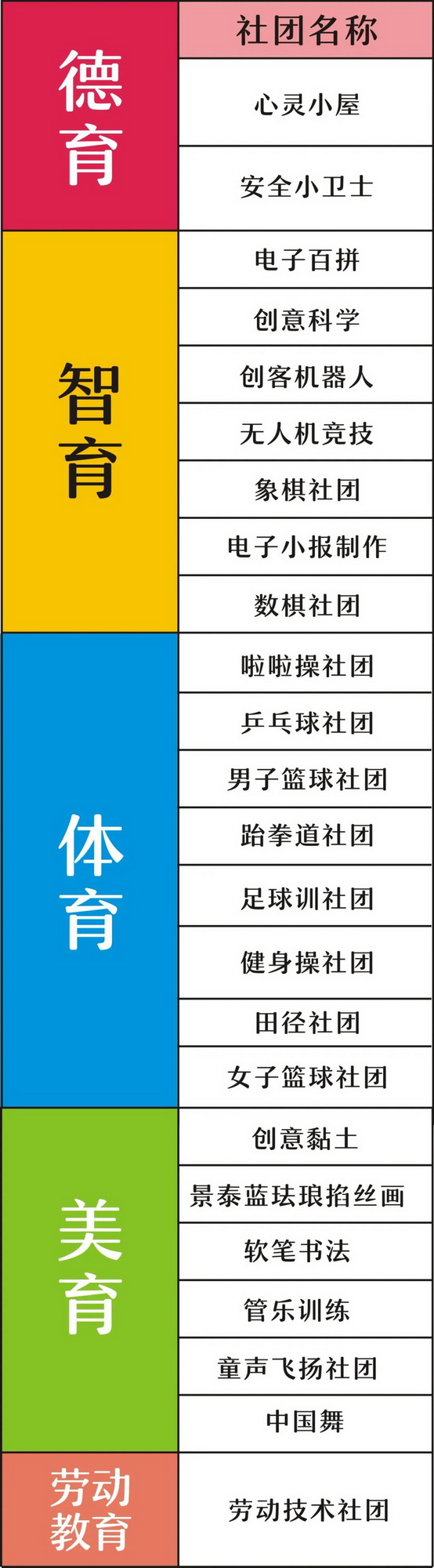 With the goal of "Making children growup healthily and happily and laying the foundation for students' lifelonghappiness", carry out various community activities in the form of moraleducation, sports, art, science and technology, help the implementation of the"Double reduction" policy and inject new vitality into campusculture. To lay a solid foundation for realizing the goal of "all-rounddevelopment and differential success" of our students, and show thesunshine growth under the "Double reduction" policy.