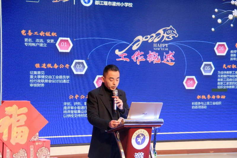 工会主席徐然林总结工会和信息中心的各项成果。Xu Ranlin, chairmanof the labor union, summarized the achievements of the labor union and theinformation center.