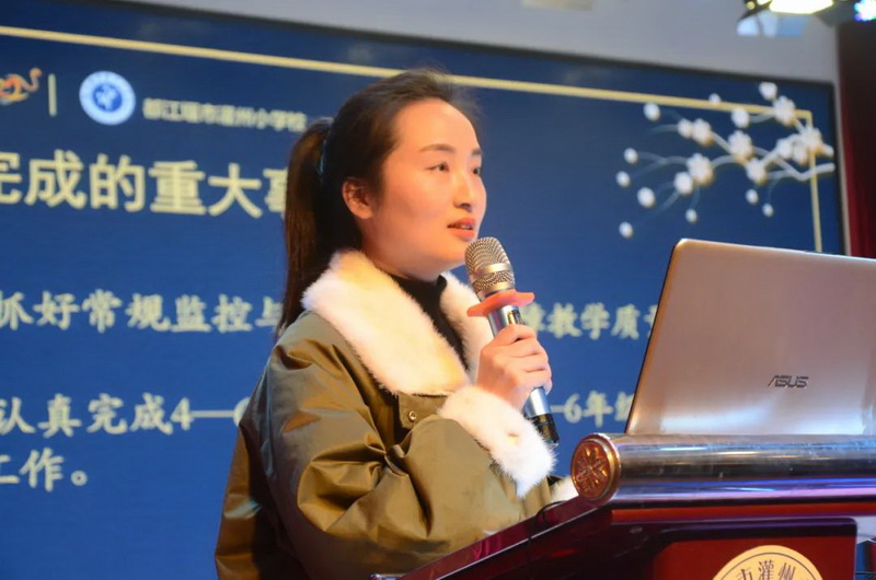 课程服务管理中心主任向荣丽以视频展示部门与综合学科组教师们的成就。Xiang Rongli,director of the Curriculum Service Management Center, showed the achievementsof the teachers of the department and the comprehensive subject group with avideo.
