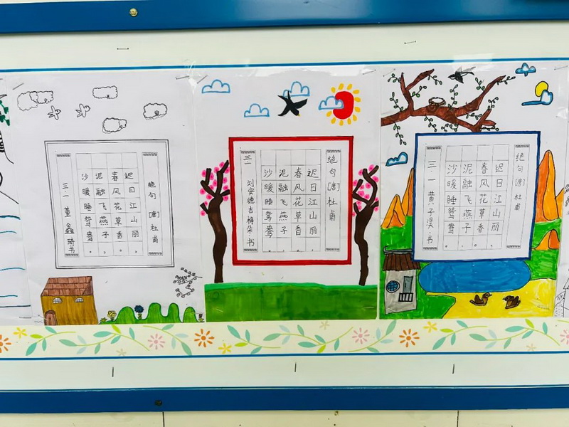 The ancient poems, which are flat, rhythmic, melodic and concise, can always bring us a lot of beautiful feelings. The so-called "painting in poetry, poetry in painting", in this spring season, the third grade children picked up their brushes and began to look for spring!
