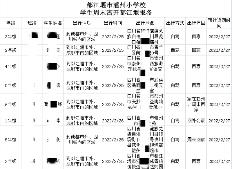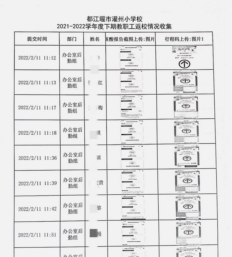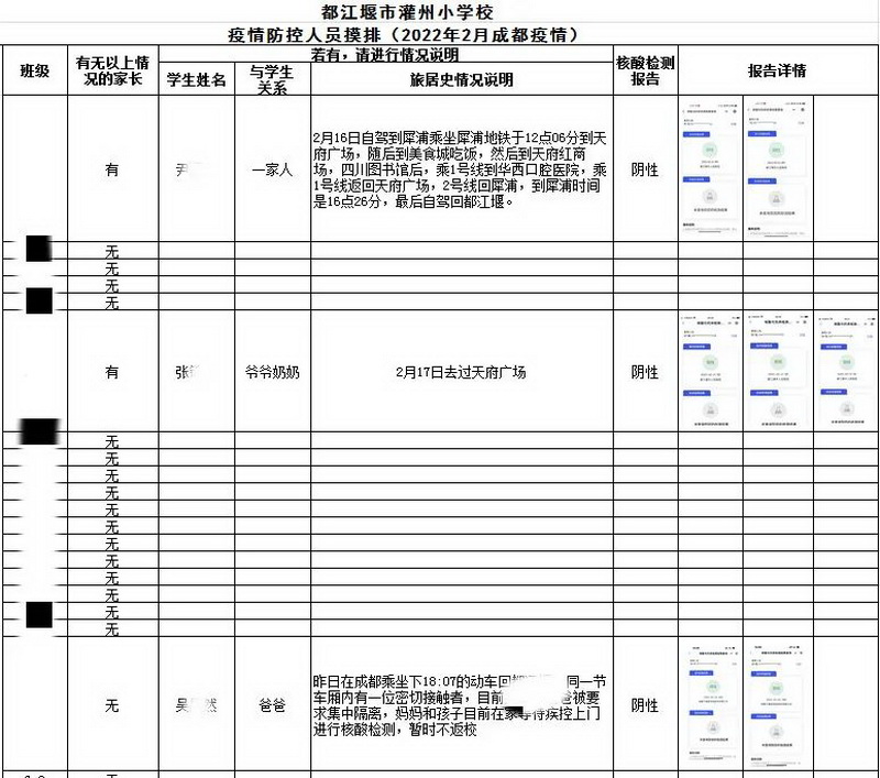 学校师生员工涉及2000多个家庭,每个人、每个家庭都是疫情防控中的重要一环,学校会针对每次疫情情况开展调查,并建立外出报备制度、周末打卡制度及台账,摸清、摸细、抓实学校人员管理。