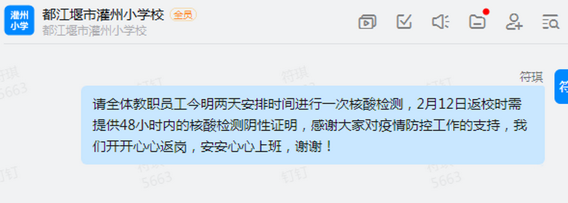 要求教职工返校核酸检测
