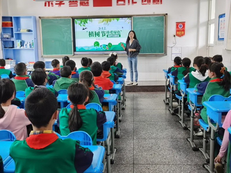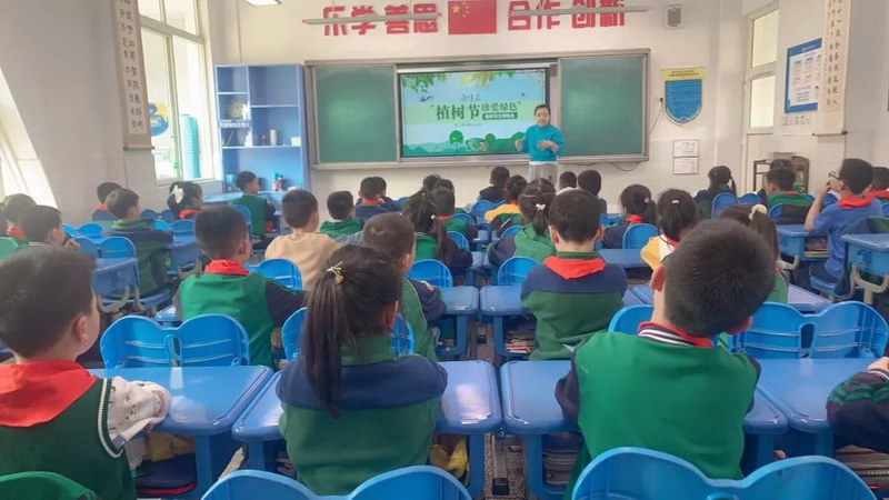 各中队利用班会课给队员们讲解了植树节的来历,了解当今生态环境的严峻,激发了队员们爱绿护绿、保护生态环境的意识。