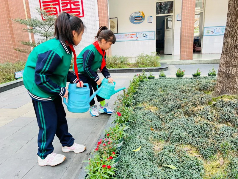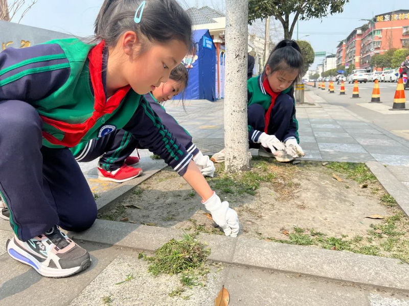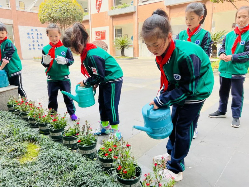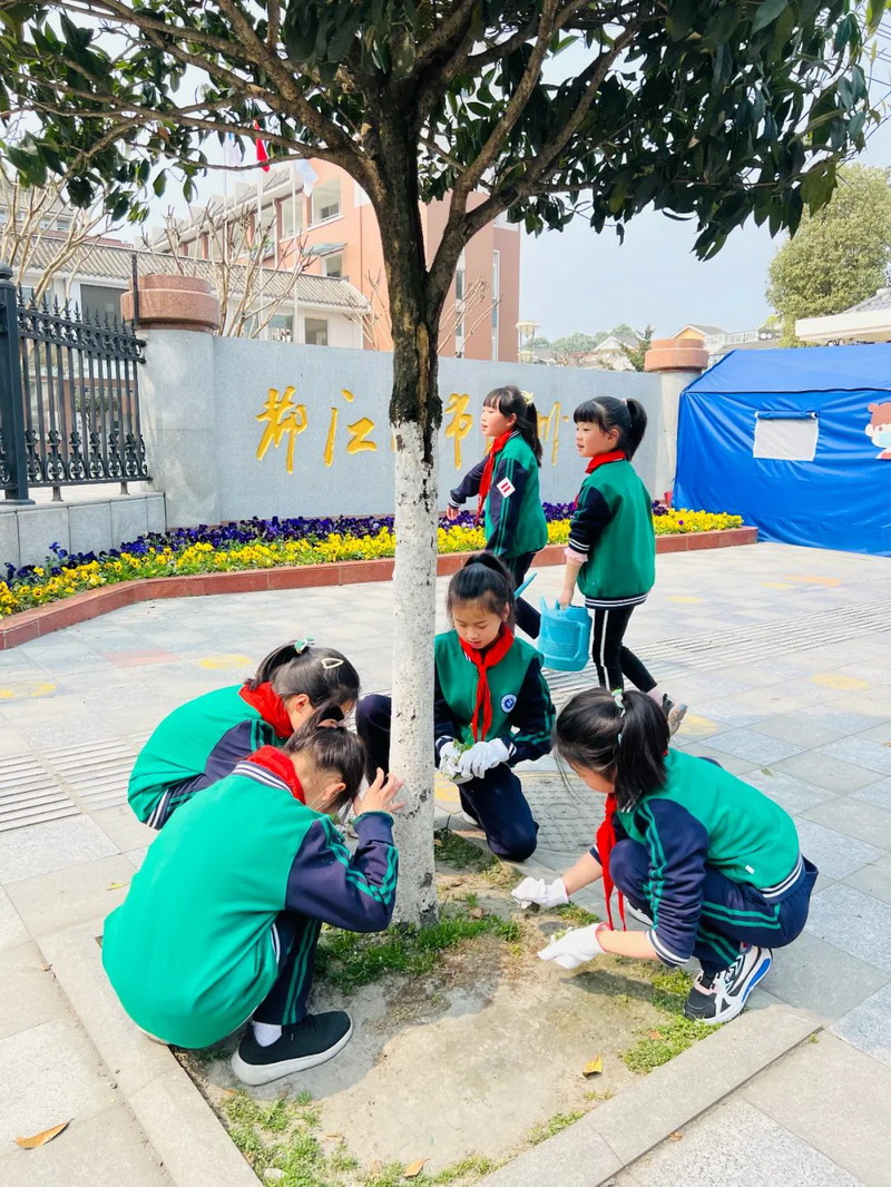 3月11日,学校组织少先队员代表在校园内开展爱绿护绿实践活动。忙碌的身影与点点绿色交相辉映,成为春日里一道靓丽的风景线。