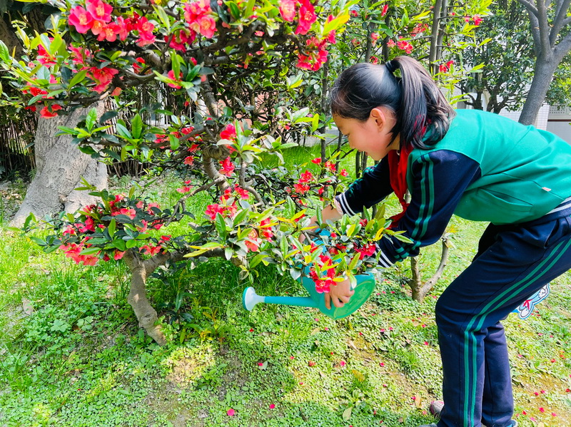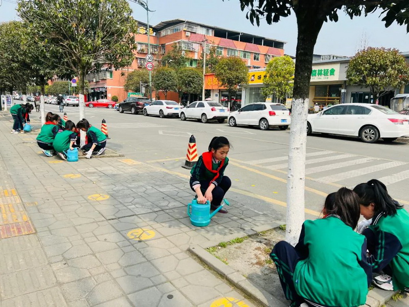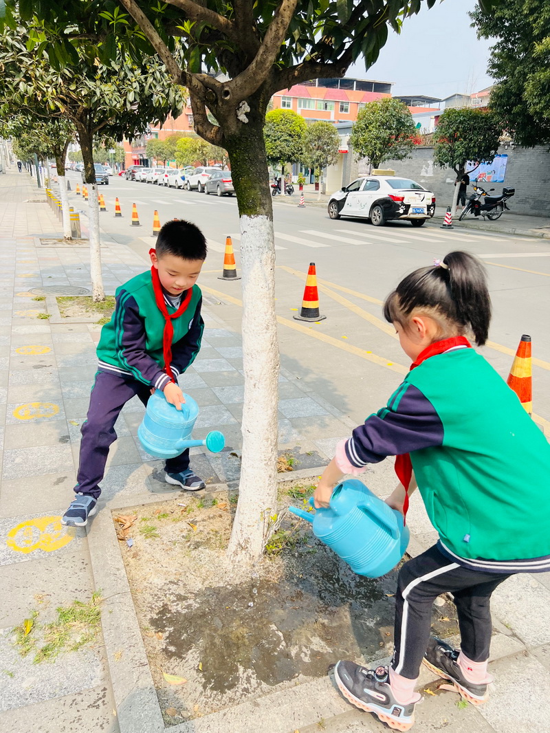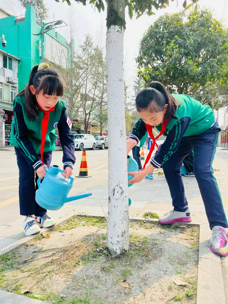 On March 11, the school organized representatives of young pioneers to carry out practical activities of loving and protecting green on campus. The busy figure and little green add radiance to each other and become a beautiful scenery in spring.