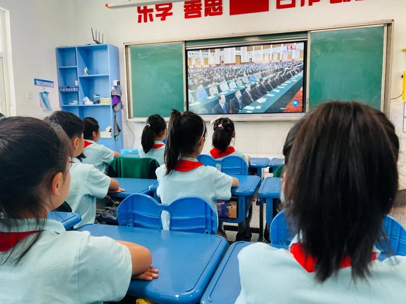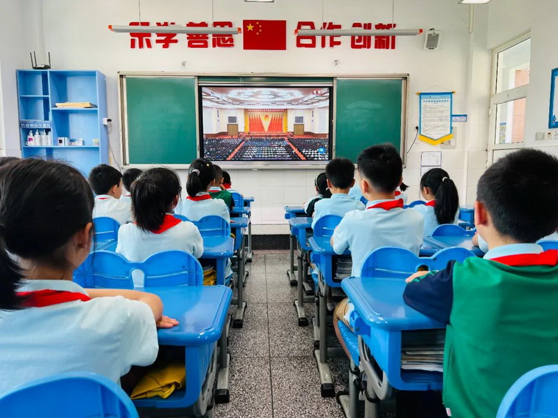 我校少先队工作者、少先队员倍感振奋、心潮澎湃,纷纷表示要牢记党的教诲,立志民族复兴,不负韶华,不负时代,不负人民,以优异成绩喜迎党的二十大胜利召开!